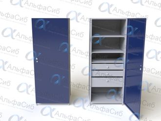 Шкаф ШИМ-02 представляет собой надежную цельносварную конструкцию, состоящую из каркаса, выполненного из профильной трубы квадратного сечения, и обшивок из листовой стали. Внутри шкафа ШИМ-02 установлены три ящика и ложемент, которые легко выдвигаются на роликовых направляющих, а также три металлические полки. Шкаф ШИМ-02 оборудован дверкой с замком и ручкой.
