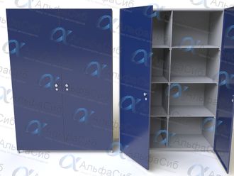 Шкаф ШИМ-05-02 разделен на две секции. В каждой секции расположены четыре металлические полки. Шкаф ШИМ-05-02 оборудован двумя дверками с замком и ручкой.