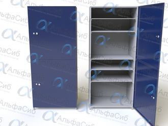 Шкаф ШИМ-05 разделен на две секции. В каждой секции расположены три металлические полки. Шкаф ШИМ-05 оборудован двумя дверками с замком и ручкой.