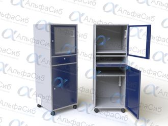 Шкаф ШКМ-04 установлен на поворотные колесные опоры, две из которых с тормозом, предназначенные для перемещения шкафа к месту установки.